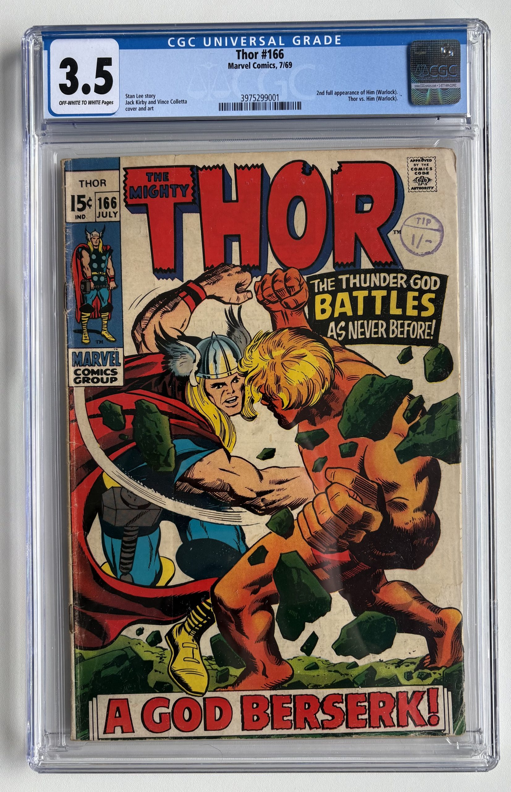 Published in 1969, the issue is CGC graded 3.5 and showcases the iconic character Thor in a classic battle scene.